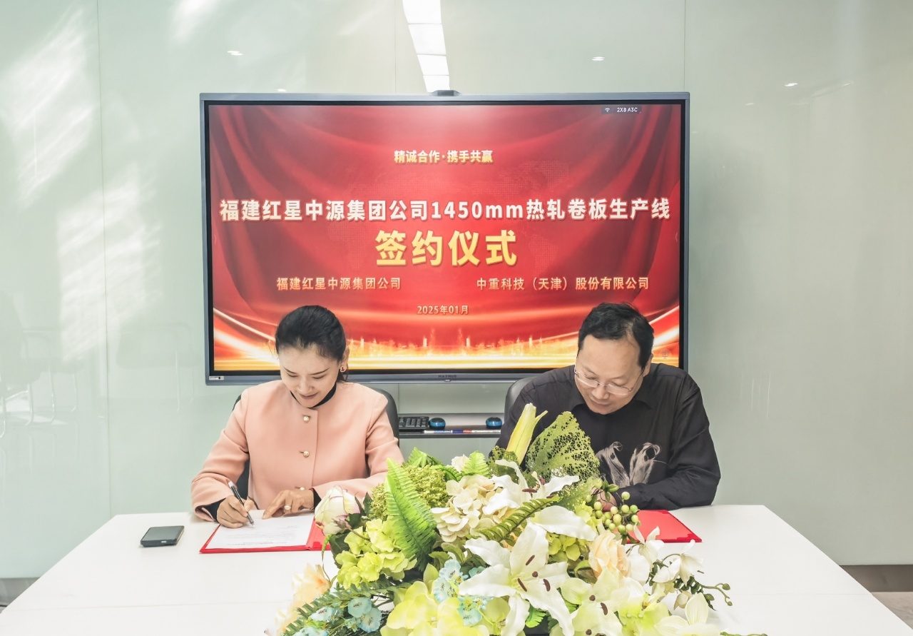 Recently, Fuzhou Xingshenghe Industry Co. Ltd., a subsidiary of Fujian Red Star Zhongyuan Investment Co., Ltd (hereinafter referred to as “RSIN”), and Zhongzhong Science & Technology (Tianjin) Co., Ltd (hereinafter referred to as “ZZ”) held a contract signing ceremony in Fuzhou for the complete mechanical, electrical and hydraulic equipment of 1,450mm hot strip mill in Nigeria. The event was attended by senior leaders from both companies: Mr. Lin Weijie, Chairman, Mr. Wu Zedong, Vice President, Ms. Guo Meijuan, Vice President and Mr. Ye Zhiwei, Executive President from RSIN, and Ms. Ma Bingbing, Chairwoman and Mr. Chen Menghua, Vice General Manager of Marketing Department representing ZZ. This project not only marks the in-depth cooperation between the two parties in the field of metallurgical equipment, but also showcases shared commitment and capability of ZZ and RSIN to jointly explore and expand into the international market.