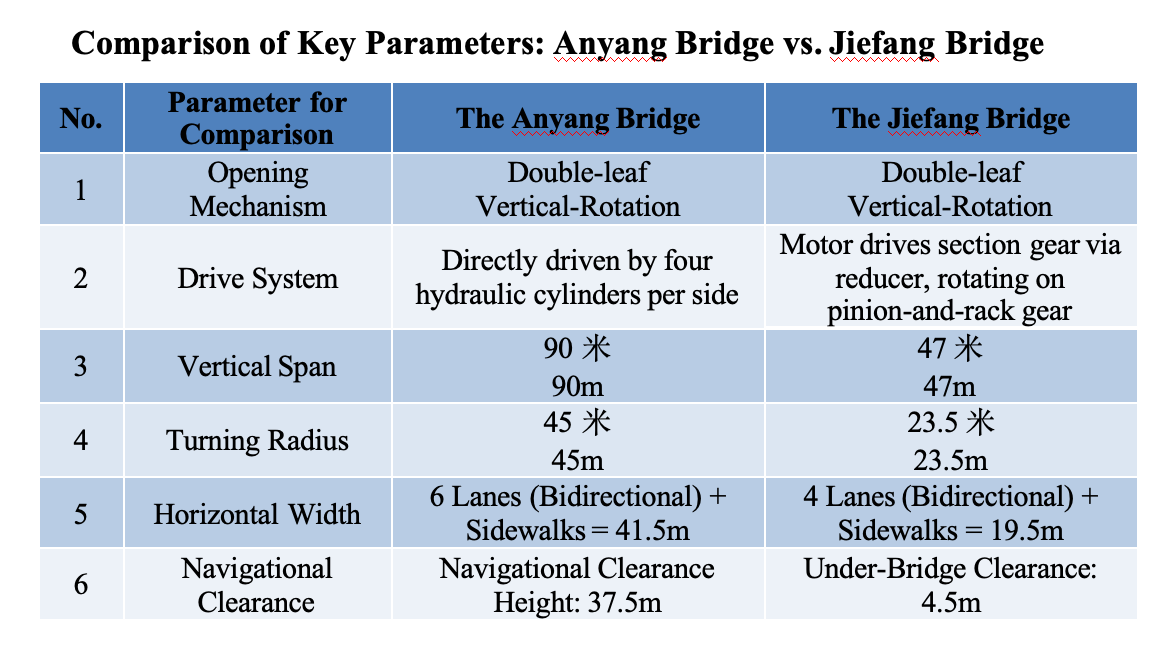 Compared with Tianjin's century-old iconic bridge, the Jiefang Bridge, the Anyang Bridge not only achieves a significant leap in both vertical span and horizontal width, but its innovative purely hydraulic drive system is also more streamlined and efficient than the traditional gear-and-pinion rack transmission mechanism. This design successfully integrates navigational capacity with urban aesthetics. Crucially, the Anyang Bridge's navigational clearance of nearly 37.5 meters will transform the passage conditions for large vessels. Upon completion, it will reserve broad navigable space for the Haihe River waterway, perfectly balancing traffic and shipping demands. This project sets a new benchmark for the technological development of long-span bascule bridges in China.